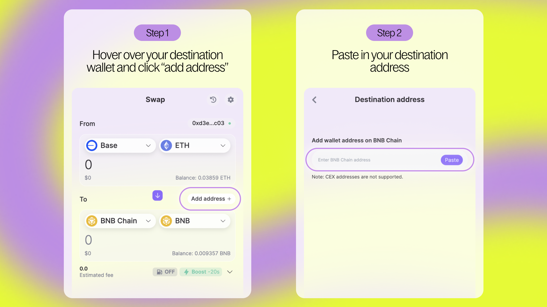 If you already have a wallet connected, Squid's app will pre-fill that address in the destination field.