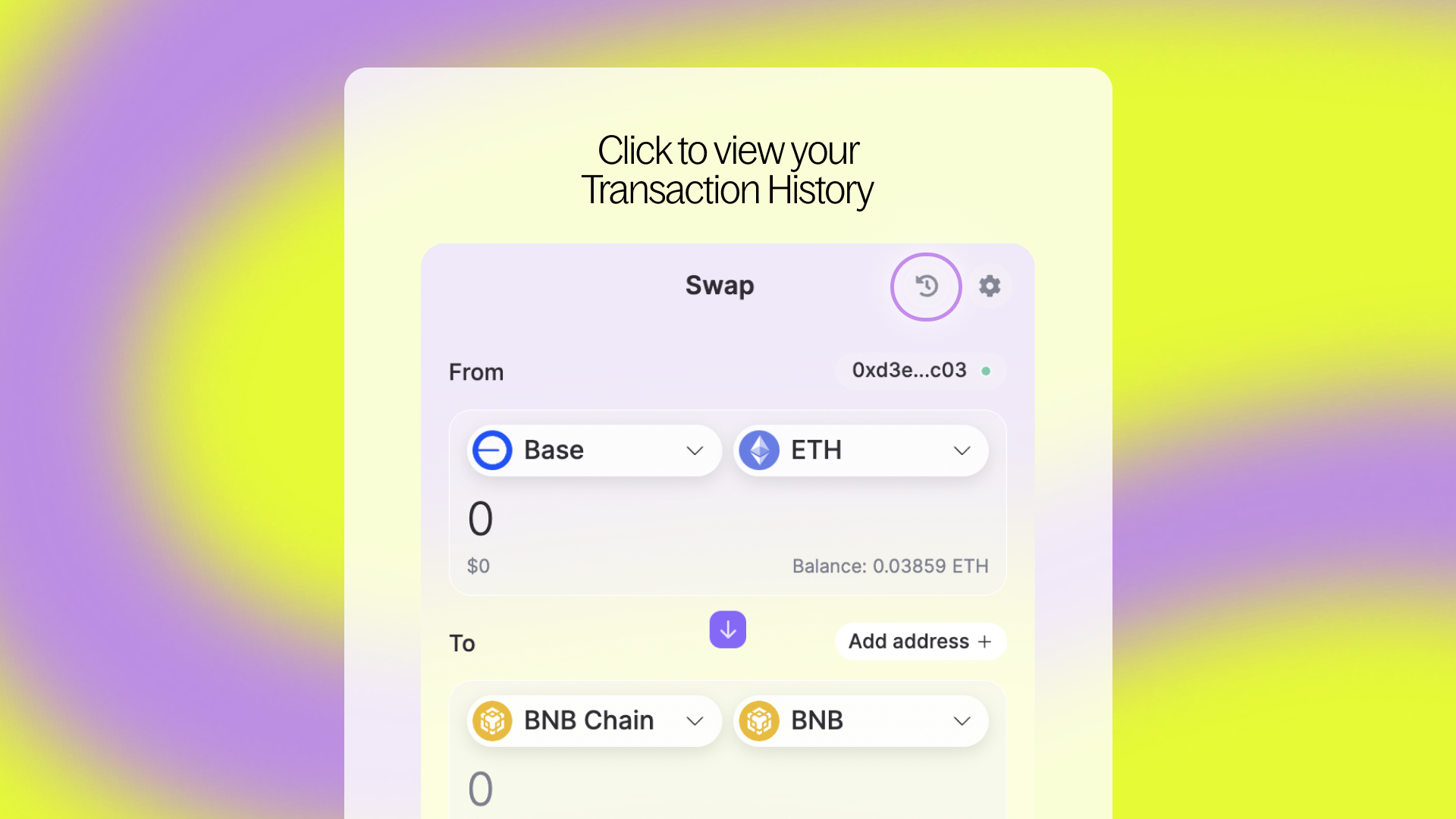 If you've recently swapped with Squid, you can find a record of your transaction history by clicking the Transaction History icon on Squid App: